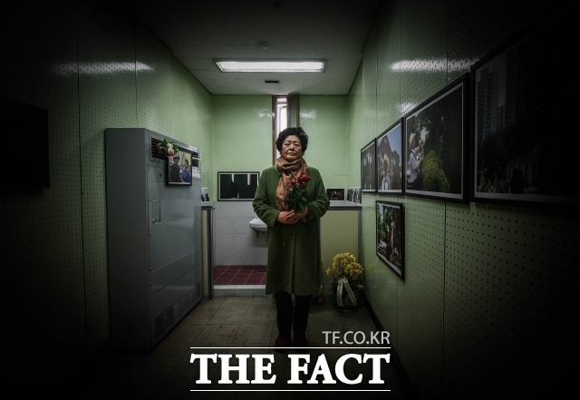 [더팩트ㅣ송주원 기자] 서울 용산구 남영동 대공분실(현 민주인권기념관) 건물 5층. 군사 정권 당시 국가에 간첩으로 조작된 피해자들을 위한 사진치유전 '나는 간첩이 아니다-오늘을 행복하게 살아가려는 그들의 이야기'가 한창 열리고 있다. 이곳에서 간첩 조작사건 피해자 김순자(74) 할머니를 만난 건 12일 정오를 조금 넘긴 시각이었다. 김 할머니는 전시회 막이 오른 2일부터 거의 매일 이곳을 찾는다. 역사의 산 증인으로서 해설위원을 자처한 김 할머니는 관람객이 건넨 붉은 장미 몇 송이를 가슴에 소중히 품고 잊지 말아야 할 역사를 회고했다. 국가 공권력에 의해 아버지를 잃은 형장 사진에 관람객의 눈길이 머물자, 김 할머니는 결국 눈물을 쏟았다.